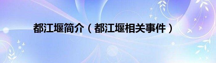 大家好,都江堰简介,都江堰相关事件很多人还不知道,现在让我们一起来看看吧!