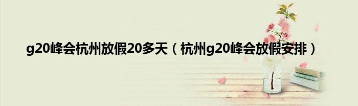 本文,g20峰会杭州放假20多天,杭州g20峰会放假安排到此就分享完毕,希望对大家有所帮助。