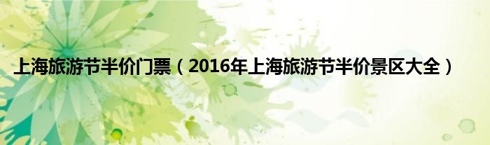 本文,上海旅游节半价门票,2016年上海旅游节半价景区大全到此就分享完毕,希望对大家有所帮助。