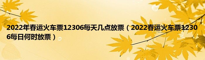 本文,2022年春运火车票12306每天几点放票,2022春运火车票12306每日何时放票到此就分享完毕,希望对大家有所帮助。