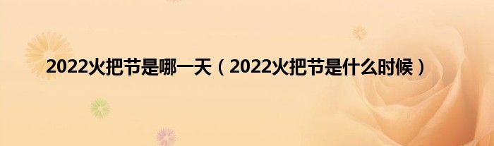 本文,2022火把节是哪一天,2022火把节是什么时候到此就分享完毕,希望对大家有所帮助。