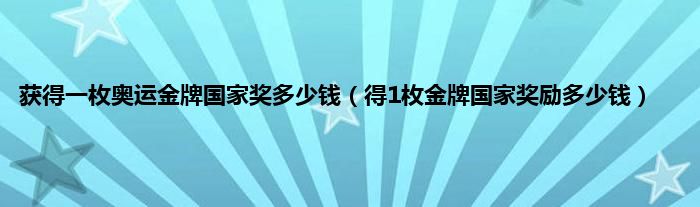 1、 获得一枚奥运金牌和国家级奖项需要多少钱?
