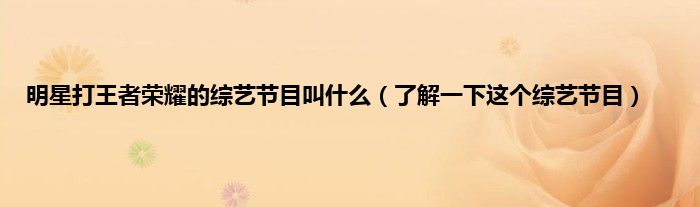 大家好,明星打王者荣耀的综艺节目叫什么,了解一下这个综艺节目很多人还不知道,现在让我们一起来看看吧!
