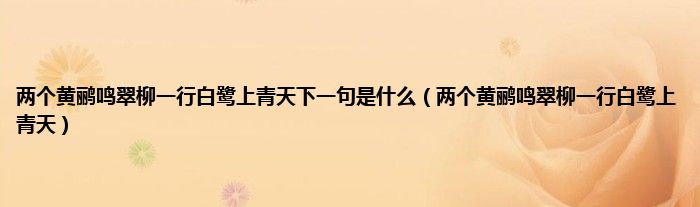 以上就是【两个黄鹂鸣翠柳一行白鹭上青天下一句是什么,两个黄鹂鸣翠柳一行白鹭上青天】相关内容。