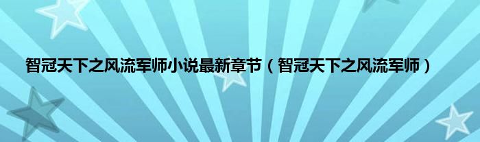大家好,小问来为大家解答以上问题。智冠天下之风流军师小说最新章节,智冠天下之风流军师这个很多人还不知道,现在让我们一起来看看吧!