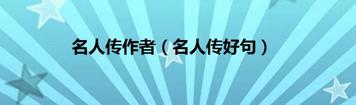 大家好,小问来为大家解答以上问题。名人传作者,名人传好句这个很多人还不知道,现在让我们一起来看看吧!