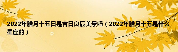 大家好,综合小编来为大家讲解下。2022年腊月十五日是吉日良辰美景吗,2022年腊月十五是什么星座的这个很多人还不知道,现在让我们一起来看看吧!