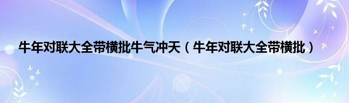 本文牛年对联大全带横批牛气冲天,牛年对联大全带横批到此分享完毕,希望对大家有所帮助。