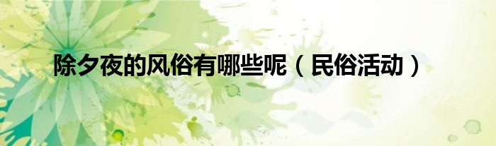 大家好,综合小编来为大家讲解下。除夕夜的风俗有哪些呢,民俗活动这个很多人还不知道,现在让我们一起来看看吧!