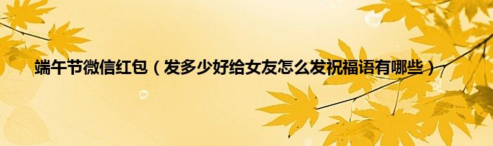 本文端午节微信红包,发多少好给女友怎么发祝福语有哪些到此分享完毕,希望对大家有所帮助。