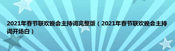 大家好,综合小编来为大家讲解下。2021年春节联欢晚会主持词完整版,2021年春节联欢晚会主持词开场白这个很多人还不知道,现在让我们一起来看看吧!