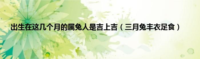 大家好,综合小编来为大家讲解下。出生在这几个月的属兔人是吉上吉,三月兔丰衣足食这个很多人还不知道,现在让我们一起来看看吧!