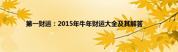 大家好,综合小编来为大家讲解下。第一财运:2015年牛年财运大全及其解答这个很多人还不知道,现在让我们一起来看看吧!