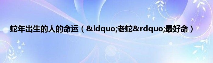大家好,综合小编来为大家讲解下。蛇年出生的人的命运,“老蛇”最好命这个很多人还不知道,现在让我们一起来看看吧!