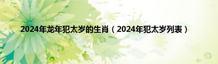 大家好,综合小编来为大家讲解下。2024年龙年犯太岁的生肖,2024年犯太岁列表这个很多人还不知道,现在让我们一起来看看吧!