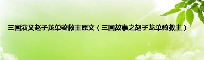 大家好,综合小编来为大家讲解下。三国演义赵子龙单骑救主原文,三国故事之赵子龙单骑救主这个很多人还不知道,现在让我们一起来看看吧!