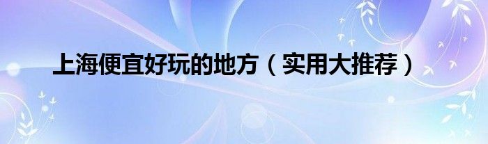 本文上海便宜好玩的地方,实用大推荐到此分享完毕,希望对大家有所帮助。