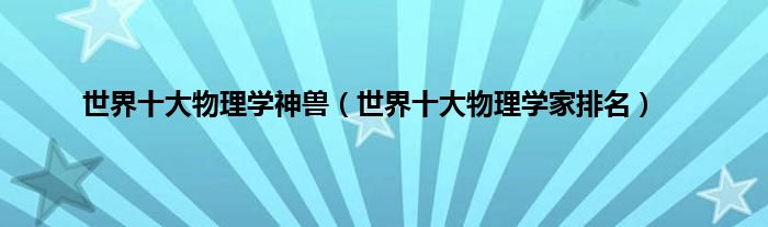 本文世界十大物理学神兽,世界十大物理学家排名到此分享完毕,希望对大家有所帮助。