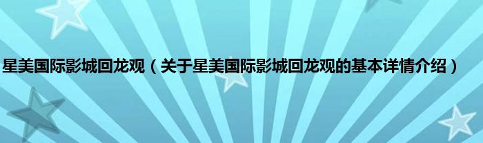 本文关于星美国际影城回龙观的基本详情介绍就讲解完毕,希望对大家有所帮助。