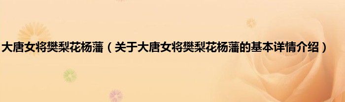 本文关于大唐女将樊梨花杨藩的基本详情介绍就讲解完毕,希望对大家有所帮助。