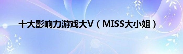 大家好,综合小编来为大家讲解下。十大影响力游戏大V,MISS大小姐这个很多人还不知道,现在让我们一起来看看吧!
