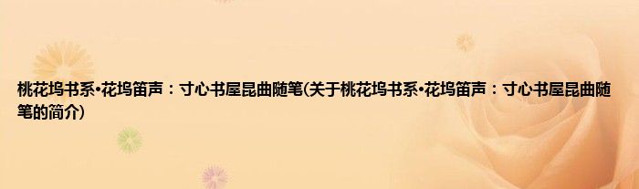 本文关于桃花坞书系·花坞笛声:寸心书屋昆曲随笔的简介就讲解完毕,希望对大家有所帮助。