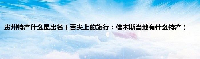 本文贵州特产什么最出名,舌尖上的旅行:佳木斯当地有什么特产到此分享完毕,希望对大家有所帮助。