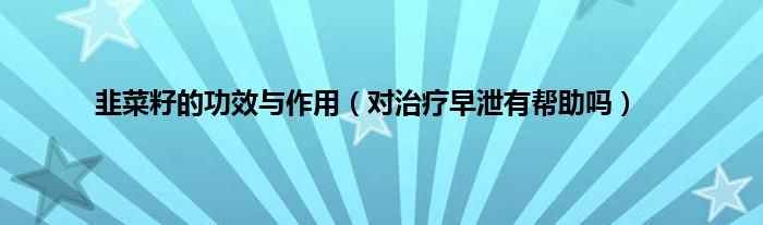 大家好,综合小编来为大家讲解下。韭菜籽的功效与作用,对治疗早泄有帮助吗这个很多人还不知道,现在让我们一起来看看吧!