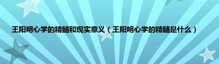 本文王阳明心学的精髓和现实意义,王阳明心学的精髓是什么到此分享完毕,希望对大家有所帮助。