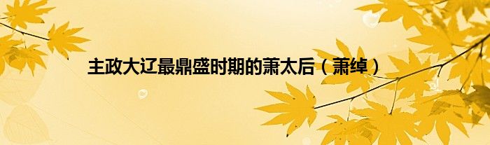 大家好,综合小编来为大家讲解下。主政大辽最鼎盛时期的萧太后,萧绰这个很多人还不知道,现在让我们一起来看看吧!
