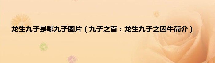 二、其它介绍:: 《中国吉祥图说》中描述为:九子之老大叫囚牛,喜音乐,蹲立于琴头;老二叫睚眦(yázì),嗜杀喜斗,刻镂于刀环、剑柄吞口;老三叫嘲风,平生好险,今殿角走兽是其遗像;四子蒲牢,受击就大声吼叫,充作洪钟提梁的兽钮,助其鸣声远扬;五子狻猊(suānní),形如狮,喜烟好坐,倚立于香炉足上,随之吞烟吐雾;六子霸下,又名赑屃(bìxì),似龟有齿,喜欢负重,碑下龟是也;七子狴犴(bìàn),形似虎好讼,狱门或官衙正堂两侧有其像;八子负屃,fùxì,身似龙,雅好斯文,盘绕在石碑头顶;老九螭(chī)吻,又名鸱尾或鸱(chī)吻,口润嗓粗而好吞,遂成殿脊两端的吞脊兽,取其灭火消灾。