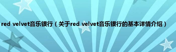 本文关于red velvet音乐银行的基本详情介绍就讲解完毕,希望对大家有所帮助。