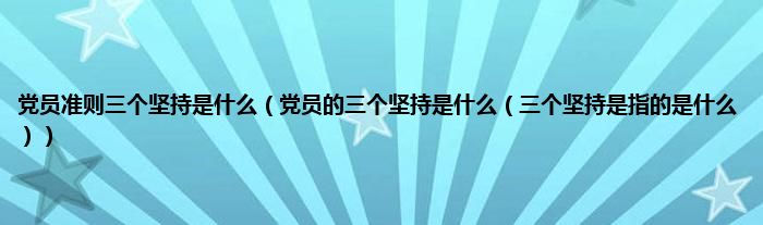 大家好,综合小编来为大家讲解下党员准则三个坚持是什么,党员的三个坚持是什么,三个坚持是指的是什么这个很多人还不知道,现在让我们一起来看看吧!