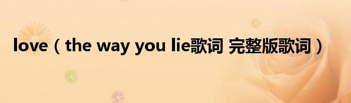 欢迎观看本篇文章,小升来为大家解答以上问题。love,the way you lie歌词 完整版歌词很多人还不知道,现在让我们一起来看看吧!