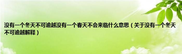 欢迎观看本篇文章,小升来为大家解答以上问题。没有一个冬天不可逾越没有一个春天不会来临什么意思,关于没有一个冬天不可逾越解释很多人还不知道,现在让我们一起来看看吧!