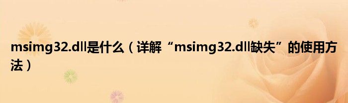 大家好,综合小编来为大家讲解下msimg32.dll是什么,详解“msimg32.dll缺失”的使用方法这个很多人还不知道,现在让我们一起来看看吧!