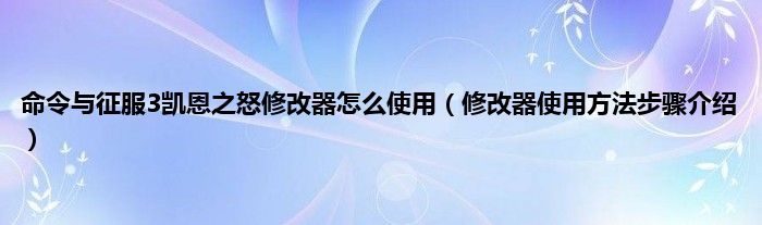 大家好,综合小编来为大家讲解下命令与征服3凯恩之怒修改器怎么使用,修改器使用方法步骤介绍这个很多人还不知道,现在让我们一起来看看吧!