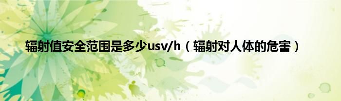 大家好,小问来为大家解答以上问题。辐射值安全范围是多少usv/h,辐射对人体的危害这个很多人还不知道,现在让我们一起来看看吧!