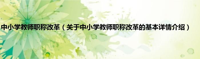 本文关于中小学教师职称改革的基本详情介绍就讲解完毕,希望对大家有所帮助。