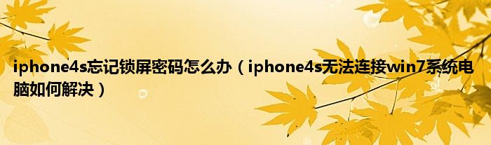 大家好,综合小编来为大家讲解下iphone4s忘记锁屏密码怎么办,iphone4s无法连接win7系统电脑如何解决这个很多人还不知道,现在让我们一起来看看吧!