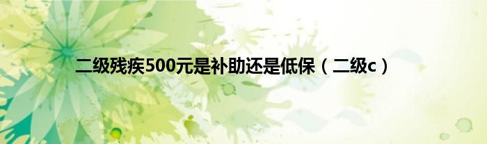 大家好,小问来为大家解答以上问题。二级残疾500元是补助还是低保,二级c这个很多人还不知道,现在让我们一起来看看吧!