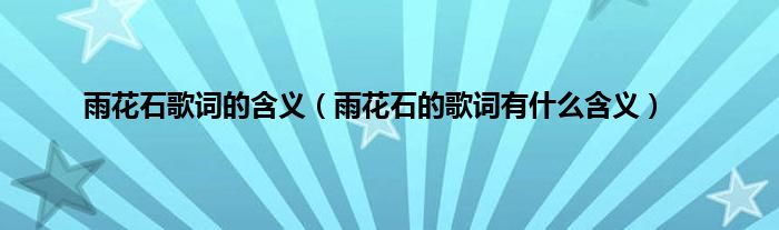 欢迎观看本篇文章,小升来为大家解答以上问题。雨花石歌词的含义,雨花石的歌词有什么含义很多人还不知道,现在让我们一起来看看吧!