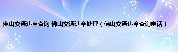 大家好,综合小编来为大家讲解下。佛山交通违章查询 佛山交通违章处理,佛山交通违章查询电话这个很多人还不知道,现在让我们一起来看看吧!