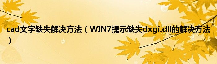 大家好,综合小编来为大家讲解下cad文字缺失解决方法,WIN7提示缺失dxgi.dll的解决方法这个很多人还不知道,现在让我们一起来看看吧!