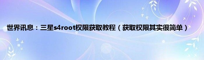 大家好,综合小编来为大家讲解下世界讯息:三星s4root权限获取教程,获取权限其实很简单这个很多人还不知道,现在让我们一起来看看吧!