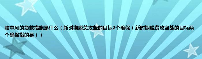 大家好,综合小编来为大家讲解下脑中风的急救措施是什么,新时期脱贫攻坚的目标2个确保,新时期脱贫攻坚战的目标两个确保指的是这个很多人还不知道,现在让我们一起来看看吧!