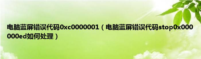 大家好,综合小编来为大家讲解下电脑蓝屏错误代码0xc0000001,电脑蓝屏错误代码stop0x000000ed如何处理这个很多人还不知道,现在让我们一起来看看吧!