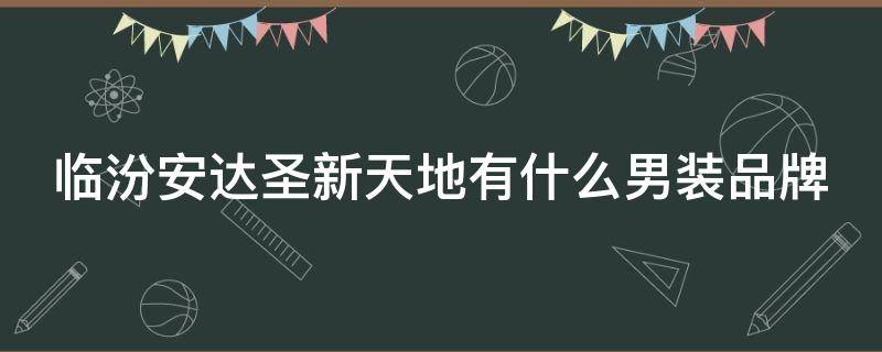 临汾安达圣新天地有狄亚诺男装、九牧王男装、金利来男装等。安达圣新天地坐拥临汾高端社区,地理位置优越,是临汾主力生活圈的聚集地,是集一流的消费名品、知名连锁品牌、五星级影院、餐饮、娱乐为一体的综合商业体,商业面积约5万平方米。安达圣新天地的开业会成为临汾一流的时尚消费场所,给临汾市民带来全新的生活方式,促进临汾的商业繁荣发展。临汾一般指临汾市。临汾市,山西省辖地级市,位于山西西南部,东倚太岳,与长治、晋城为邻;西临黄河,与陕西延安、渭南隔河相望;北起韩信岭,与晋中、吕梁毗连;南与运城接壤,因地处汾水之滨而得名。