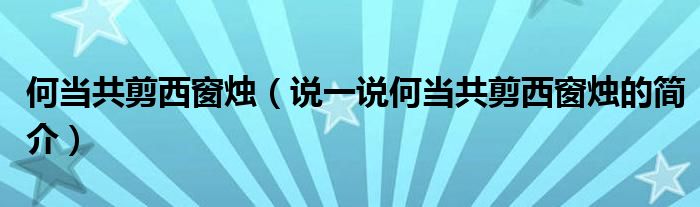 何当共剪西窗烛(说一说何当共剪西窗烛的简介)