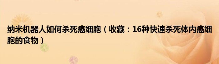 纳米机器人如何杀死癌细胞(收藏:16种快速杀死体内癌细胞的食物)